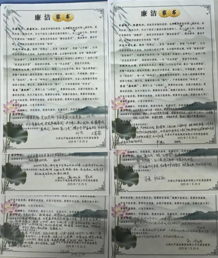 自公司年中工作會(huì)議發(fā)放《廉潔家書》以來(lái),家屬監(jiān)督主動(dòng)性顯著增強(qiáng)。122份沉甸甸的囑咐中,“平安是金,心安是家”、“千萬(wàn)不要有‘事’,全家都指望你每天早點(diǎn)回家”的真摯寄語(yǔ),彰顯家庭助廉的溫度;“以清正守護(hù)職業(yè)操守,為公司發(fā)展和家庭幸福盡責(zé)擔(dān)當(dāng)”“以廉潔護(hù)家庭平安、用擔(dān)當(dāng)踐初心使命”的廉潔承諾,體現(xiàn)共守底線的決心。干部職工紛紛表示,家書讓廉潔教育有深度更有溫度,家人的每句叮嚀宛如紀(jì)律警鐘,每項(xiàng)承諾如同家庭誓言,自我約束意識(shí)得到進(jìn)一步強(qiáng)化,家庭已然成為拒腐防變的“堅(jiān)固堤壩”。