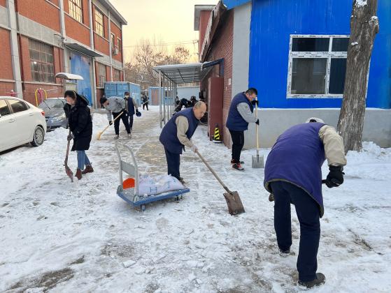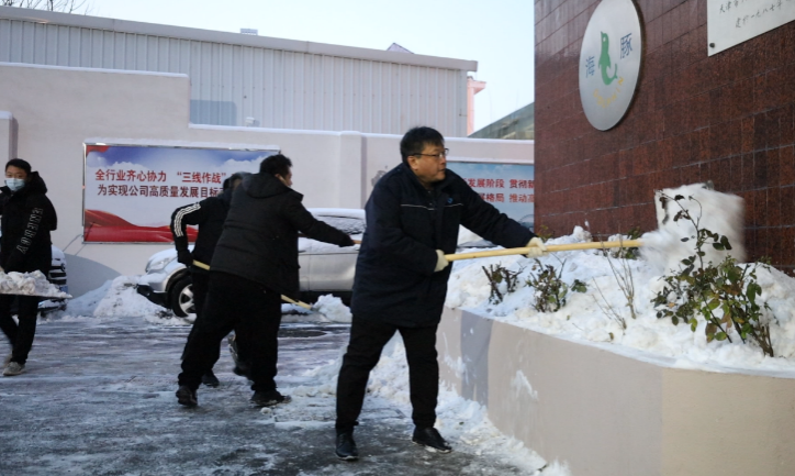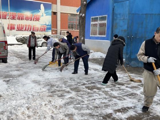 高度重視快部署,迅速響應(yīng)重落實(shí)。晨光熹微,寒風(fēng)陣陣,公司黨委書記、董事長楊永勝,黨委副書記、總經(jīng)理郭秀萍及公司領(lǐng)導(dǎo)班子成員,天還未亮就早早到達(dá)公司,帶領(lǐng)黨員干部開展掃雪工作,寒風(fēng)刺骨也沒有阻擋公司員工除冰掃雪的熱情,冰雪天里,一個(gè)個(gè)忙碌的身影彰顯著責(zé)任、奉獻(xiàn)和擔(dān)當(dāng)。大家充分發(fā)揚(yáng)不怕苦、不怕累的精神,不懼風(fēng)雪、不畏嚴(yán)寒,揮舞鐵鍬、密切配合,齊力清除院內(nèi)道路厚重的積雪和結(jié)冰。忙碌的身影在皚皚白雪中形成一道亮麗的風(fēng)景線,在大家的共同努力下,公司院內(nèi)積雪得到有效清理,大家用實(shí)際行動(dòng)為守護(hù)職工群眾安全。