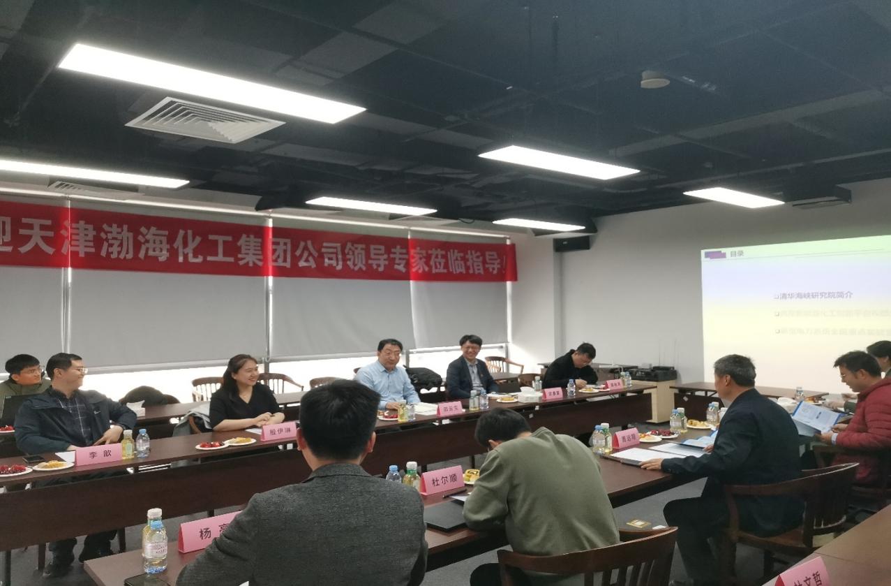 清華海峽研究院有關(guān)部門負責同志;渤化集團副總工程師、研究總院院長武春雷,科技創(chuàng)新部副部長、研究總院副院長殷伊琳,科技創(chuàng)新部主管聶曉濤,大沽化工公司研發(fā)中心副主任李歆、谷云峰等參加座談。