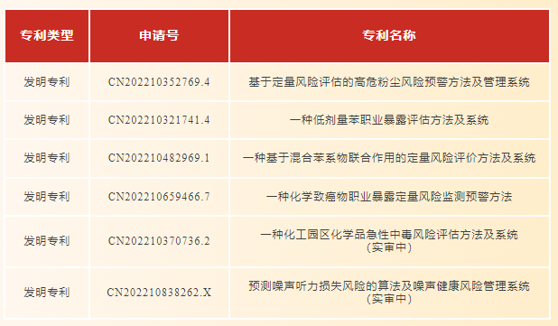 天津渤?;ぜ瘓F(tuán)有限責(zé)任公司勞動(dòng)衛(wèi)生研究所聯(lián)合渤化集團(tuán)雙創(chuàng)基地管理運(yùn)營(yíng)公司天津渤化訊創(chuàng)科技有限公司共同設(shè)立《重點(diǎn)職業(yè)病監(jiān)控預(yù)警關(guān)鍵技術(shù)專利培育》項(xiàng)目,圍繞重點(diǎn)職業(yè)病危害開(kāi)展重點(diǎn)高價(jià)值專利布局,目前已申請(qǐng)高價(jià)值發(fā)明專利6項(xiàng),其中4項(xiàng)已獲授權(quán),2項(xiàng)在實(shí)審中,對(duì)我國(guó)職業(yè)病防治技術(shù)需求,重點(diǎn)開(kāi)展風(fēng)險(xiǎn)評(píng)估、監(jiān)測(cè)預(yù)警等相關(guān)技術(shù)研究,并建立了一套完整的職業(yè)病危害評(píng)估、風(fēng)險(xiǎn)預(yù)測(cè)及監(jiān)測(cè)防范的研究應(yīng)用體系。