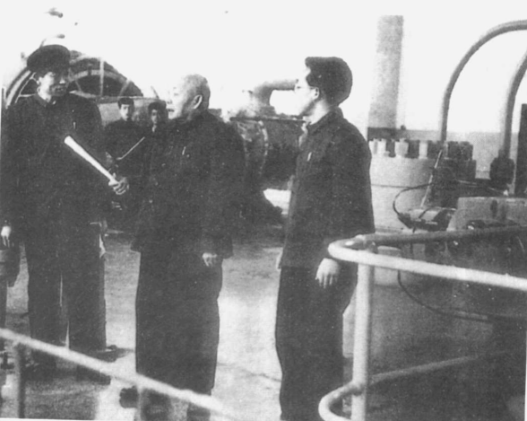 ▲在工廠深入調(diào)研的侯德榜(右二)