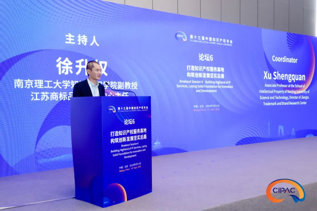 國家知識產(chǎn)權(quán)局公共服務(wù)司司長楊帆、上海市知識產(chǎn)權(quán)局副局長衛(wèi)嵐、中南大學(xué)法學(xué)院副院長何煉紅、國家知識產(chǎn)權(quán)局公共服務(wù)司信息傳播利用處處長王波、北京國專知識產(chǎn)權(quán)有限責(zé)任公司總經(jīng)理劉洋、華為知識產(chǎn)權(quán)部專利信息總監(jiān)任濱、北京交通大學(xué)信息管理理論與技術(shù)國際研究中心教授級工程師張向宏等來自政府、信息服務(wù)機構(gòu)、企業(yè)的有關(guān)專家學(xué)者,共同探討知識產(chǎn)權(quán)公共服務(wù)如何發(fā)揮對于促進新質(zhì)生產(chǎn)力發(fā)展的支撐保障作用并發(fā)布知識產(chǎn)權(quán)信息分析利用成果。南京理工大學(xué)知識產(chǎn)權(quán)學(xué)院副教授、江蘇商標(biāo)品牌研究中心主任徐升權(quán)主持該論壇。