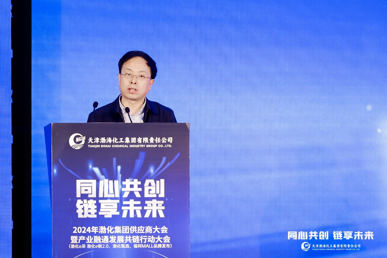 渤化集團黨委書記、董事長王俊明做會議講話,他向參加渤化集團供應(yīng)商大會的各級領(lǐng)導(dǎo)、合作伙伴、各界朋友,致以衷心的感謝和熱烈的歡迎,并向與會人員簡單介紹了渤化集團的奮斗歷程。他表示,2024年是充滿機遇與挑戰(zhàn)的一年,也是推動集團公司高質(zhì)量發(fā)展的關(guān)鍵之年。新的一年,渤化集團要拼搏向前、借勢發(fā)力,錨定建設(shè)具有較強國際競爭力的行業(yè)一流企業(yè)集團的發(fā)展目標,認真貫徹習(xí)近平總書記重要講話精神,不斷推動建成“安全、高效、智慧、綠色”的供應(yīng)鏈體系,不斷深化渤化集團與供應(yīng)商之間的業(yè)務(wù)合作,以堅定的信念、務(wù)實的態(tài)度,專業(yè)的服務(wù)共同譜寫渤化集團與供應(yīng)商伙伴協(xié)同發(fā)展的新篇章。在新的一年,始終堅持產(chǎn)品品質(zhì)、搭好品牌自信橋,始終堅持產(chǎn)業(yè)創(chuàng)新、搭好協(xié)作同心橋,始終堅持互信共贏、搭好智造圓夢橋,在陽光渤化“315”方案指導(dǎo)下,打造“陽光采銷平臺”,聚焦“一中心二平臺”建設(shè),全面推進以采購銷售管理中心為抓手,以e采平臺、e銷平臺為主陣地,確保交易過程陽光化、規(guī)范化、數(shù)字化、展現(xiàn)“陽光渤化采銷”新風(fēng)采,走出獨具特色的制造業(yè)高質(zhì)量發(fā)展的渤化新篇章,為天津市制造業(yè)立市強市戰(zhàn)略貢獻渤化集團應(yīng)有的力量。