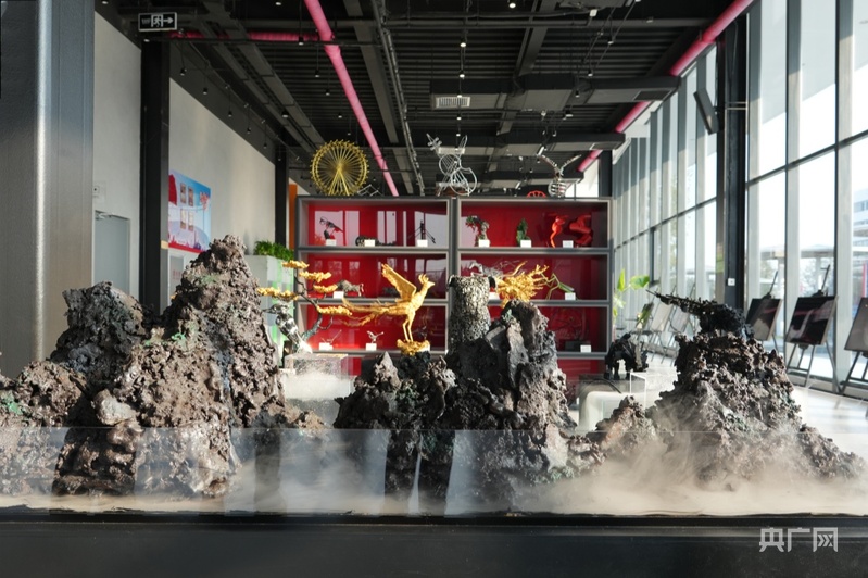 工人們用廢鋼渣等原料制作的工藝品(央廣網(wǎng)記者 周思楊 攝)