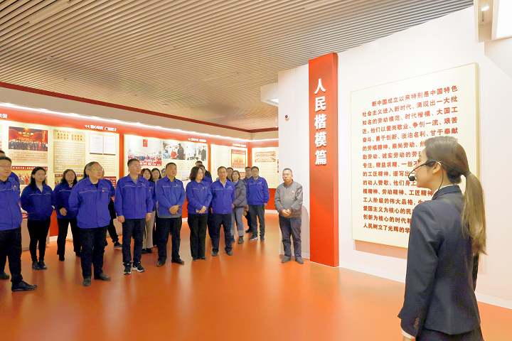 走進展覽大廳,“勞動最光榮、勞動最崇高、勞動最偉大、勞動最美麗”幾個字映入眼簾。在講解員的帶領(lǐng)下,大家依次參觀了“時代召喚”“人民楷?!薄敖蜷T榜樣”“拼搏奮斗”四個主題板塊,通過文字、圖片、視頻、實物等多種形式,深入了解了不同歷史時期(包括孫維忠等渤化勞模在內(nèi))全國和天津市157名勞動模范、先進人物的感人事跡和奮斗歷程,以及廣大一線勞動者為黨和人民立下的輝煌業(yè)績功勛。共同重溫習(xí)近平總書記關(guān)于大力弘揚勞模精神、勞動精神、工匠精神的重要論述以及習(xí)近平總書記親臨天津視察期間提出的“四個善作善成”重要要求等,深刻領(lǐng)悟了“愛崗敬業(yè)、爭創(chuàng)一流、艱苦奮斗、勇于創(chuàng)新、淡泊名利、甘于奉獻”的勞模精神,“崇尚勞動、熱愛勞動、辛勤勞動、誠實勞動”的勞動精神,“執(zhí)著專注、精益求精、一絲不茍、追求卓越”的工匠精神,更加堅定了以勞模工匠為榜樣爭做新時代最美奮斗者的決心和信心。